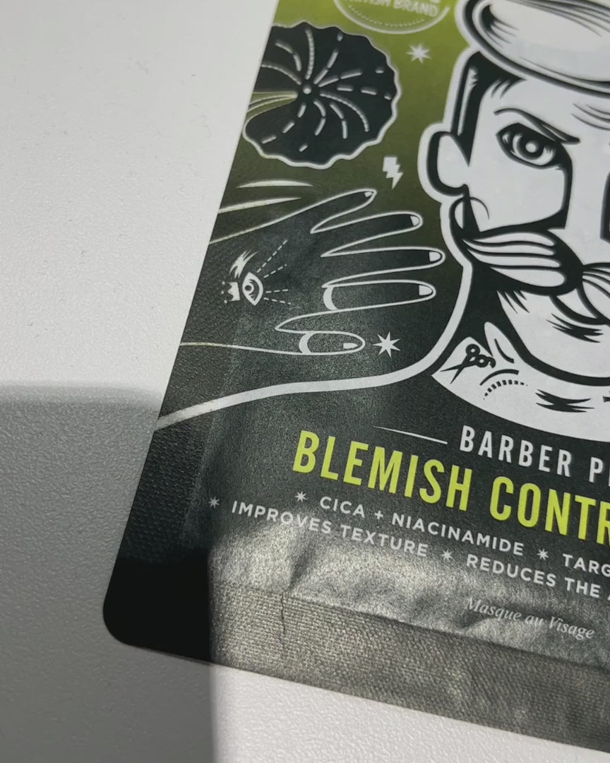 Barber Pro Blemish Control Face Sheet Mask is a plant-based treatment designed to tackle breakouts, oily skin, and uneven texture. In just 15 minutes, it reduces shine, soothes redness, and leaves skin feeling refreshed and under control, making it ideal for oily and combination skin types.